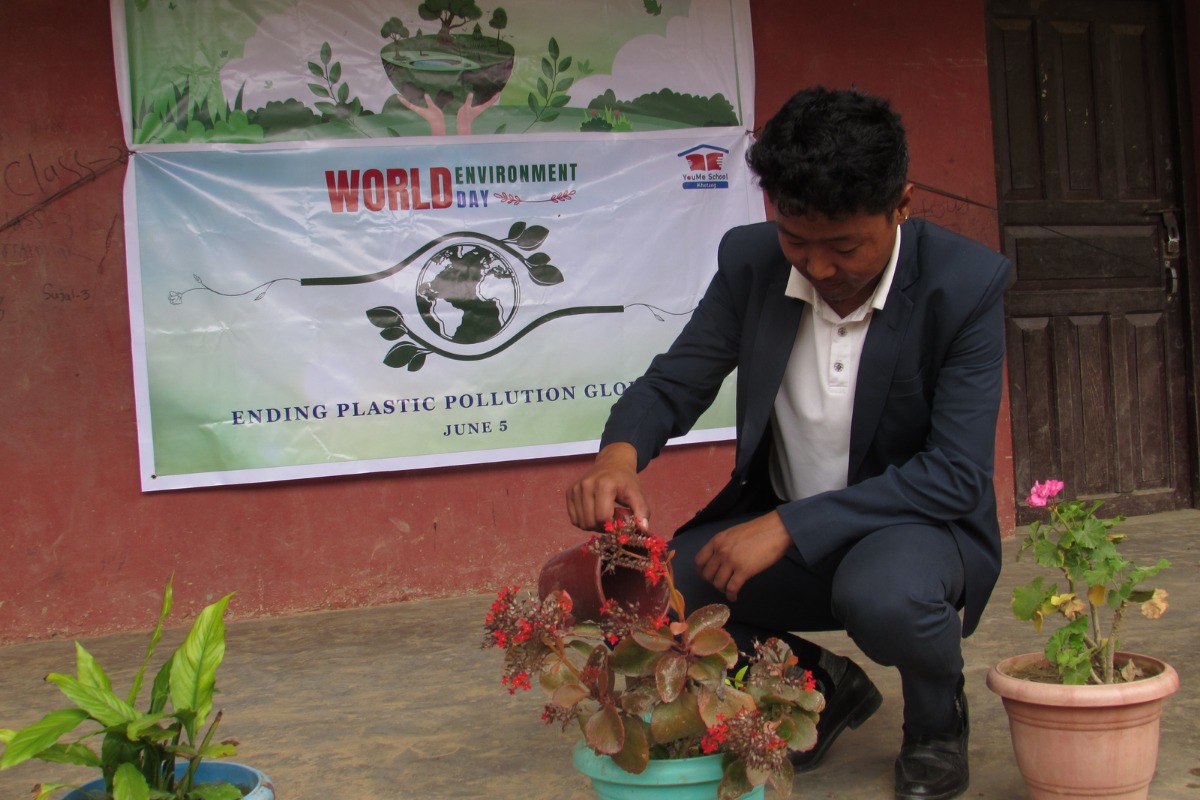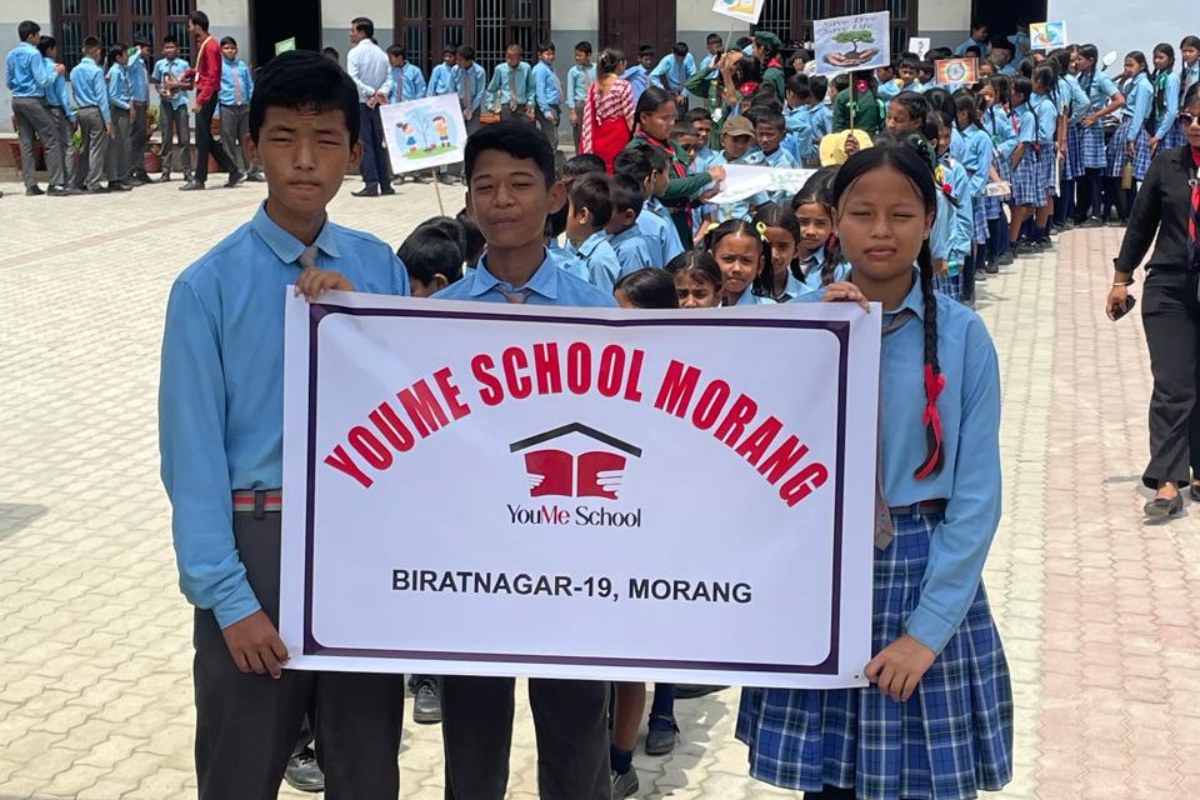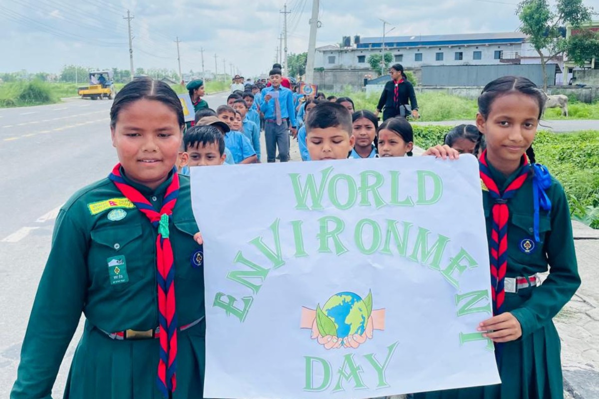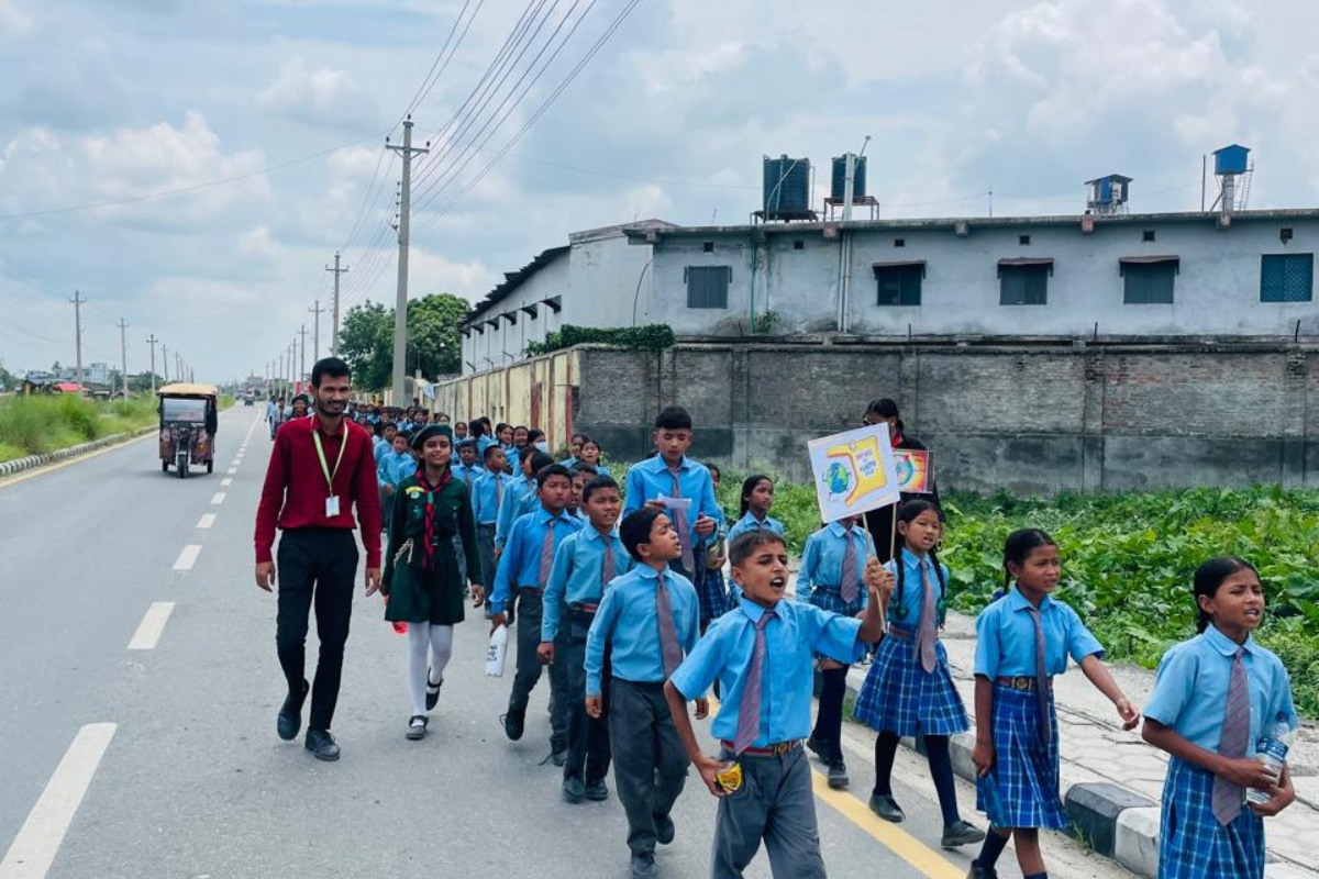 6月の世界環境デーにあわせて、ビラトナガル校の子どもたちが地域の人々に向けて環境保護の大切さを伝えるマーチを実施しました!