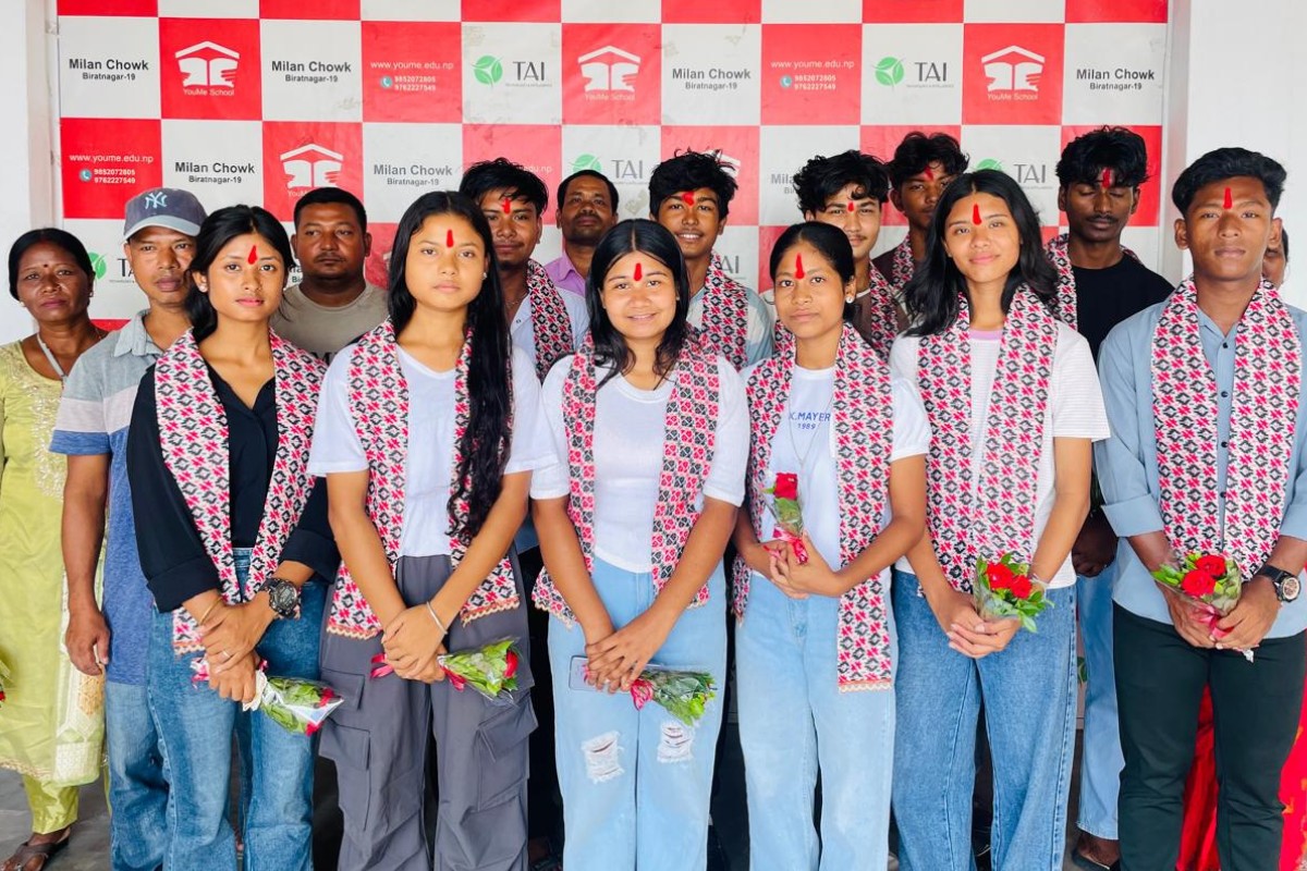 ビラトナガル校では、SEE(中学校卒業試験)を終えたGrade 10の卒業生たちが学校を訪ね、みんなで再会を祝いました。