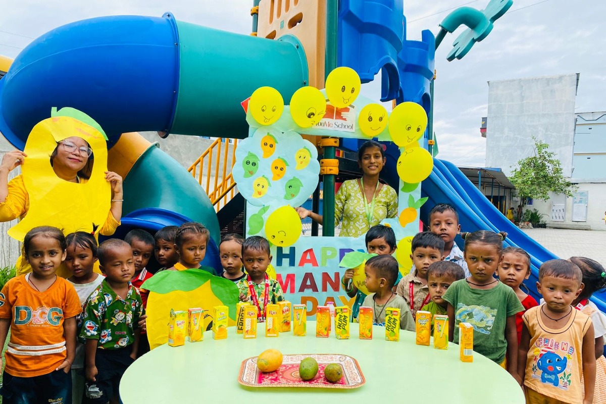 この日 ビラトナガル校では、幼稚園組の子どもたちが、「マンゴーDAY」を元気いっぱいに楽しみました!
