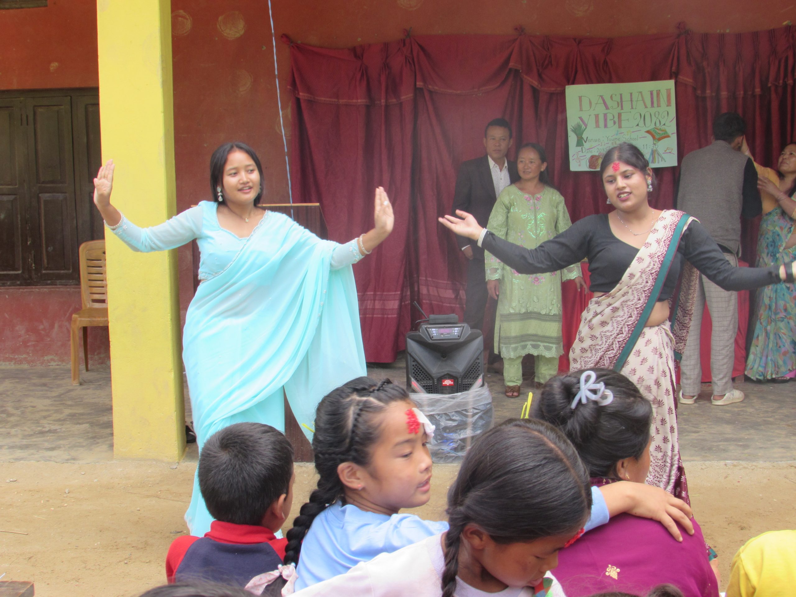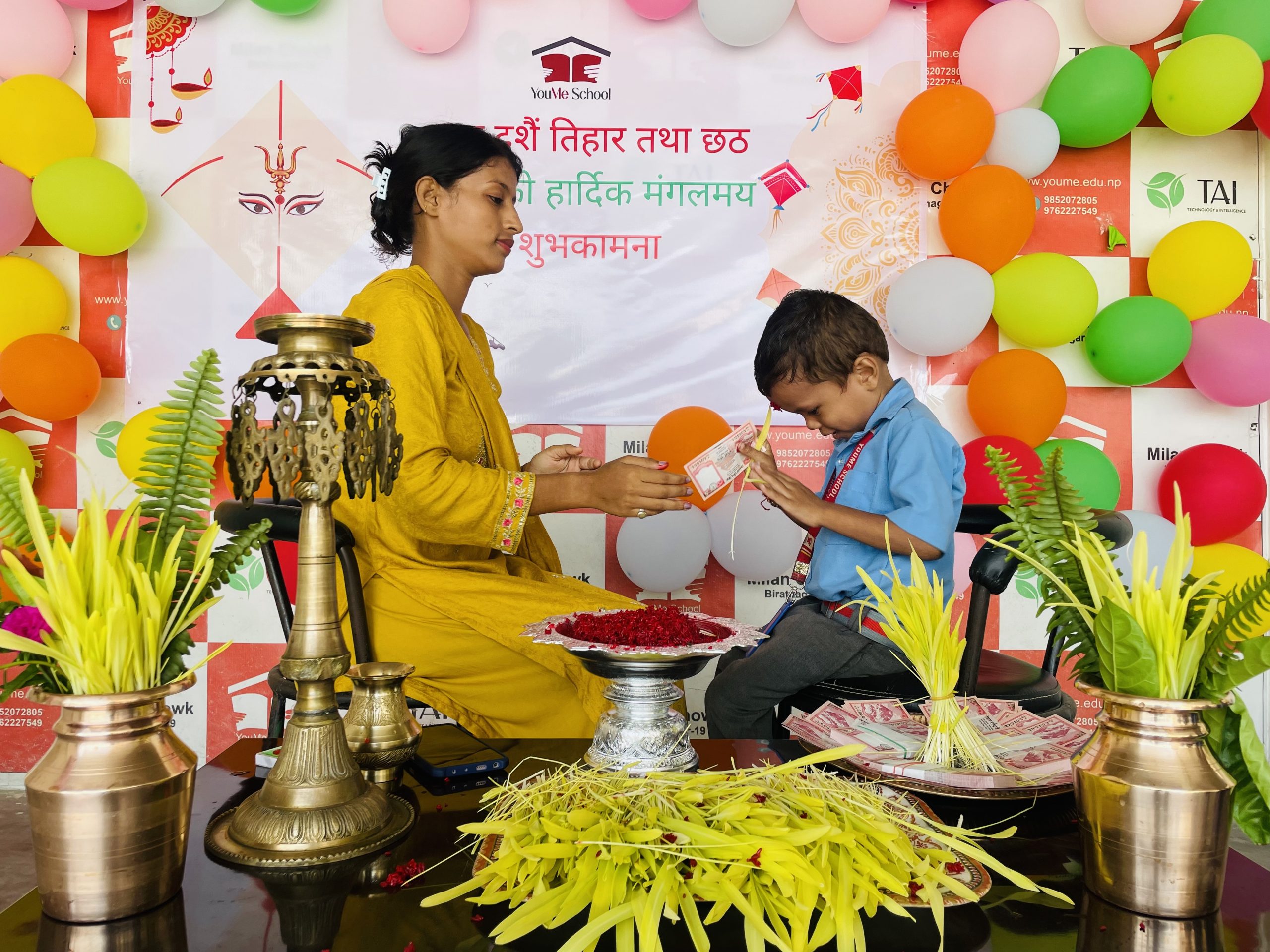 校内は笑顔と温かい雰囲気にあふれ、子どもたちも伝統文化の大切さを感じながら楽しいひとときを過ごしました。ダサインは「善が悪に勝つこと」を象徴する祭りでもあり、学校全体が一体感に包まれた特別な日となりました。